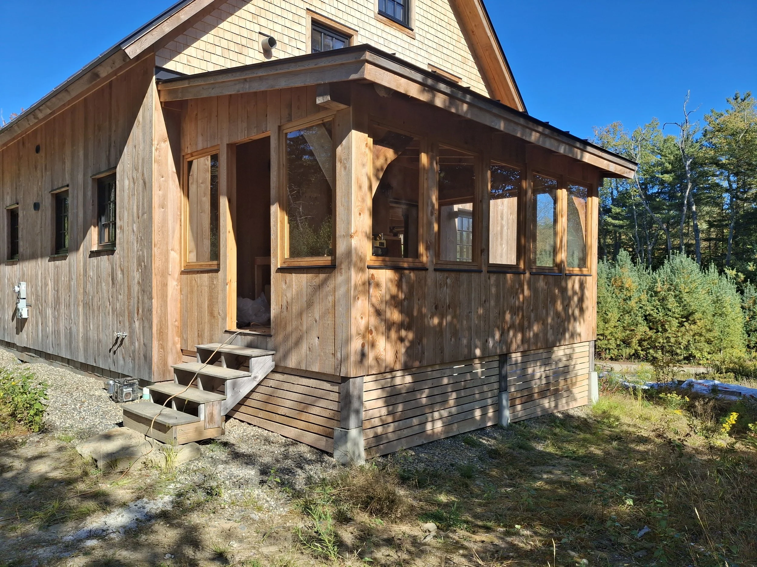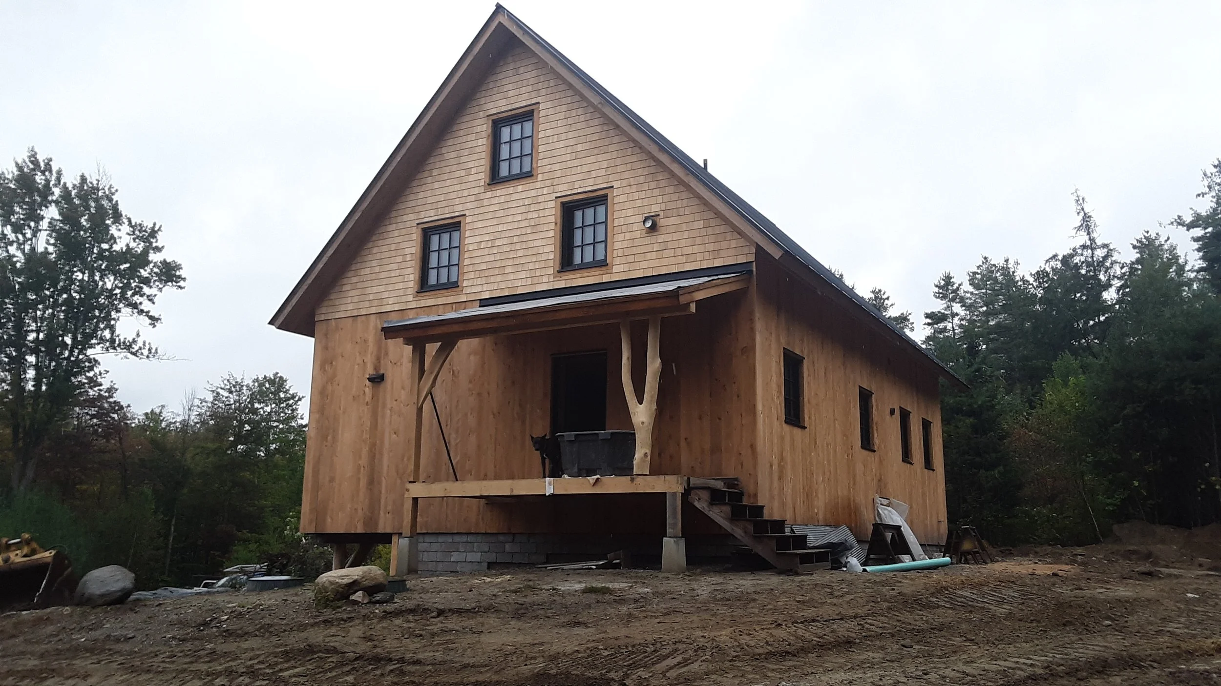 This one-of-a-kind straw bale home stands as our flagship project, epitomizing natural construction at its finest. This timber-framed masterpiece showcases locally sourced, curvy timbers, insulated with Vermont-manufactured, organic straw bale panels. Adorned with interior clay and lime plaster obtained from nearby sources, this home exudes simplicity and beauty in its finishes. Featuring high-performance, triple-pane windows, along with siding made from local cedar and hemlock, this elegant design embodies a timeless allure while maintaining a modern feel.