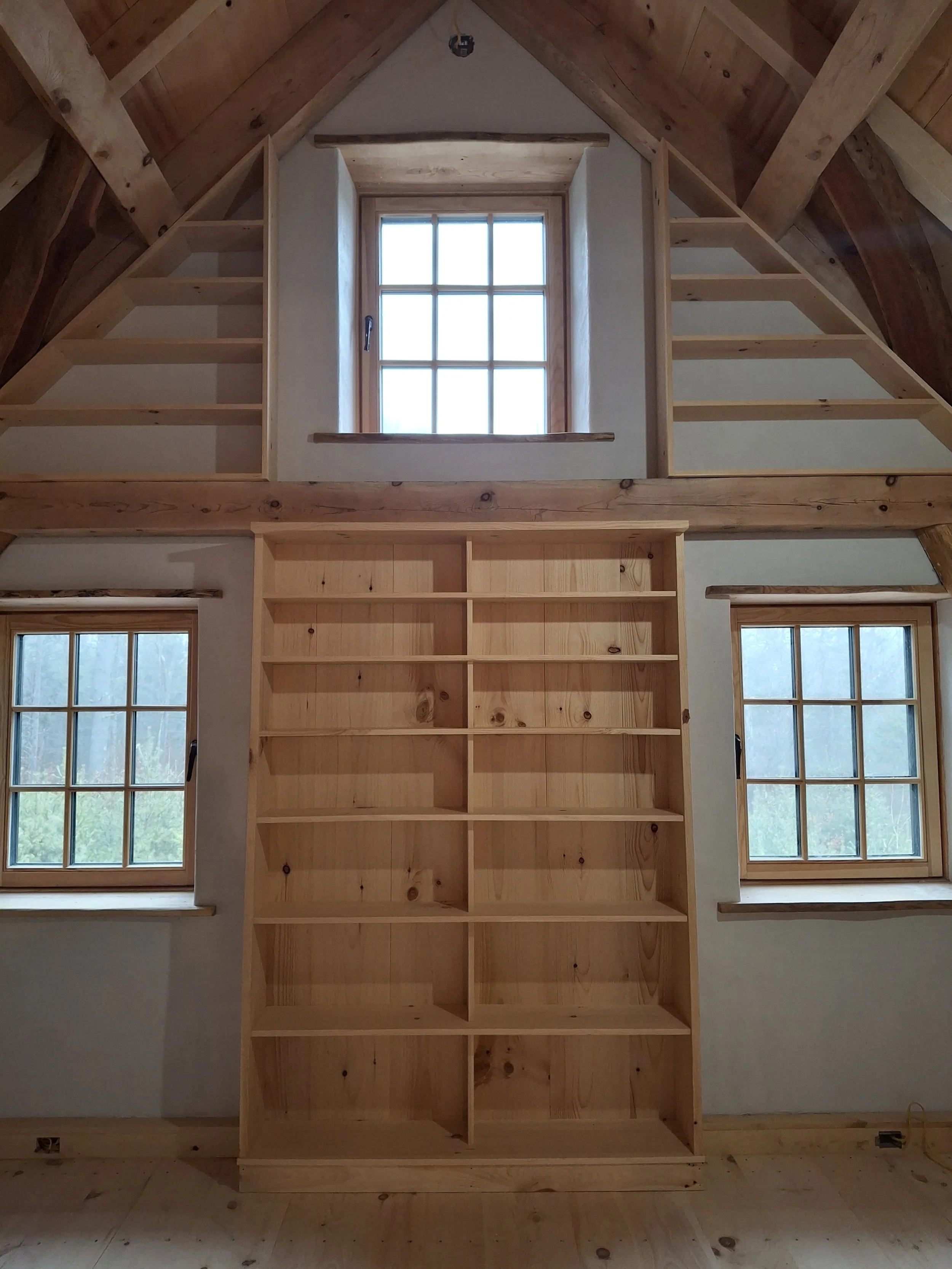 Imagine curling up with a good book and a cup of coffee on a bench seat made of black walnut and sculpted lime plaster, a 16” thick window sill to rest your elbow, and a stout cruck brace overhead that helps support the standing seam roof for the next 200 years. This is what we are about. We build homes for people to experience each unique moment of their lives, and that last for a legacy.